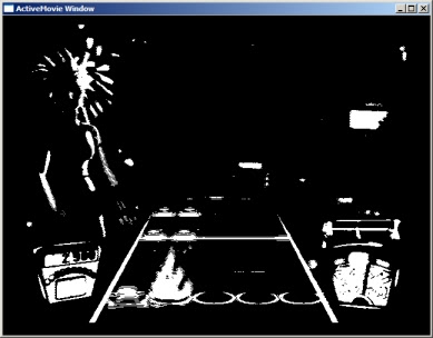 Just by moving the area of detection to the side of the screen, using smaller trapezoids, all parameters in a different configurations file (guitarhero.ini), and there you go, you can play with or against the GuitarHeroNoid.